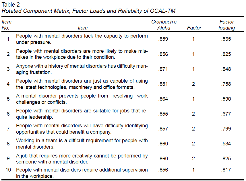 For this study, a new measurement tool called Opinions of Work Capacities of people with Mental Disorders Scale (OCAL-TM) was developed to evaluate the opinions of HR professionals on the work capacity of people with MD.